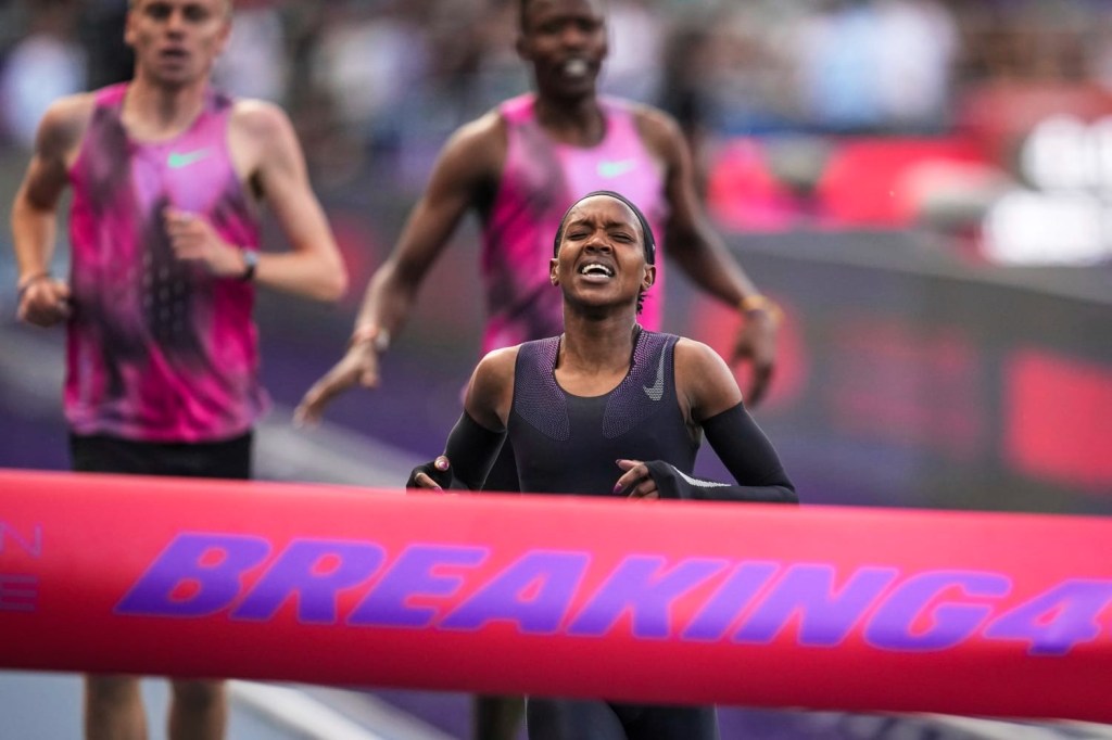 Kenya’s Faith Kipyegon came close but fell short of becoming the first woman to run a mile under four minutes, finishing in 4:06.42 during Nike’s “Breaking4” project. Despite running faster than her own world record, the time won’t be ratified due to the use of male pacers, similar to Eliud Kipchoge’s marathon attempt.