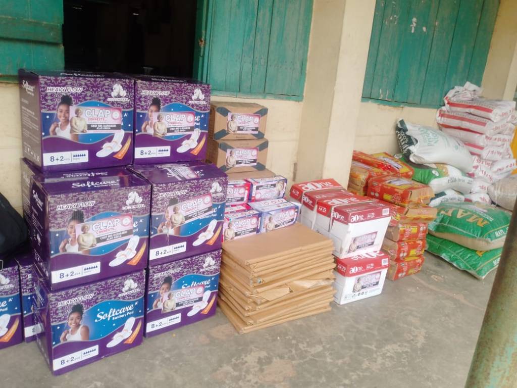 During the visit, she donated food items and essential supplies including rice, beans, maize, palm oil, spaghetti, sanitary pads, toiletries, and learning materials. She described the outreach as part of her monthly interventions aimed at easing the burden on vulnerable groups, adding that plans were underway to provide uniforms for the pupils.